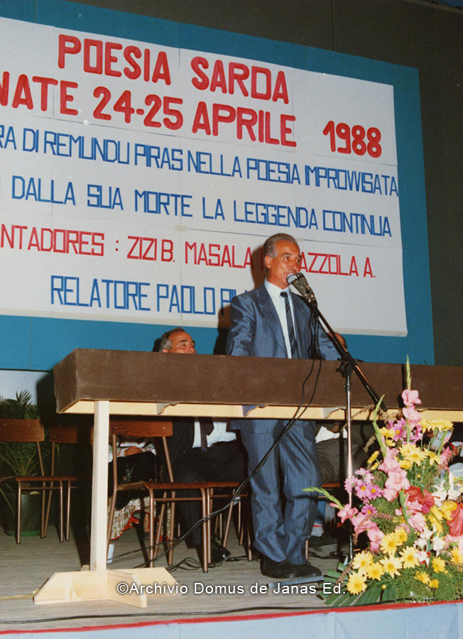 Nasce a Onifai nel 1928, inizia a cantare all’età di 24 anni a Dorgali nel 1952 in compagnia di Totoni Crobu e Pitzente Simula. Agli inizi della sua carriera, Zizi ha fatto in tempo ad incrociare alcuni dei grandi improvvisatori del secolo scorso: Barore Sassu, Barore Tuccone e Remundu Piras. Da allora Zizi ha avuto modo di confrontarsi con i migliori interpreti della poesia a bolu – soprattutto Peppe Sozu, Antoni Pazzola e Marieddu Màsala – e di ritagliarsi un ruolo di primo piano nella storia della poesia improvvisata. Si può dire, senza timore di essere smentiti, che Zizi abbia cantato in tutti i paesi della Sardegna. Molto apprezzato dal pubblico per la sua voce potente e melodiosa, per più di sessant’anni è stato un indiscusso protagonista delle dispute in versi. Un fenomeno che allo stesso tempo simbolizza la resistenza della gara poetica all’estinzione e alle difficoltà. Altre doti di Zizi sono la velocità nell’esecuzione e la buona intesa con il tenore che accompagna le ottave. ©Domus de Janas Editore